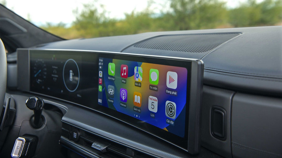 Hyundai SantaFe 2024 không chỉ chú trọng vào hiệu suất mà còn được trang bị hàng loạt tiện nghi cao cấp. Xe sở hữu màn hình giải trí trung tâm 12.3 inch, màn hình thông tin cũng 12.3 inch.
